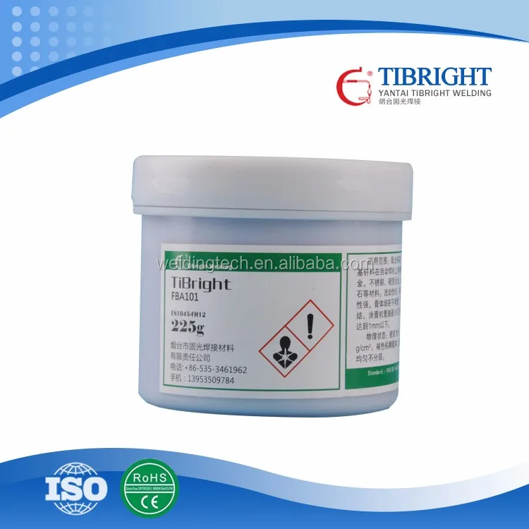Technical info: This series of brazing paste are on the paste of organic fluid solvent with the right features of fluidity,flammability,evaporability,and polarity which combined can make the very fine flux powder suspend,uniformly,perform with excellent chemical-flux activity,and also long-term stability.The organic solvent can be vaporized and decomposed at the temperature of brazing process with no carbon residue,which means the chemical activity of the flux can be well contained.Furthermore,at the normal storage condition ,the fluid hardly vaporizes to initiate any kinds of agglomeration,which used to be a big problem for water based paste.Given the fact that the agglomeration is not generated in the system,the series of FBA product can be perfectly used on the tubes in an automatic coating system.